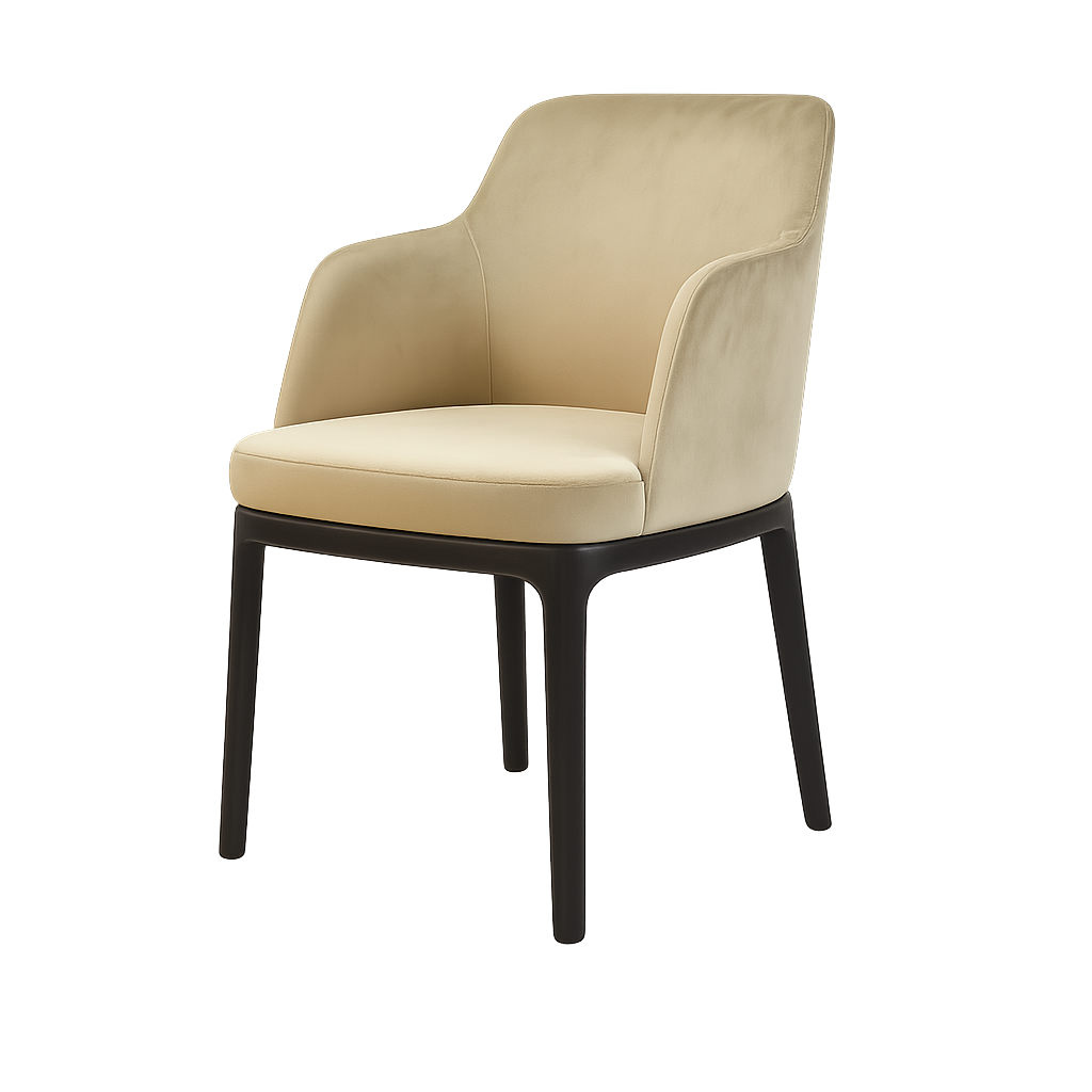 El elegante sillón Ariel combina elegancia y comodidad en un diseño moderno. Su respaldo contorneado y sus reposabrazos suavemente redondeados brindan comodidad durante largos periodos de tiempo, mientras que su diseño clásico le confiere un carácter atemporal. Es perfecto tanto para interiores domésticos como para restaurantes u hoteles, aportando un sutil toque de prestigio al espacio.