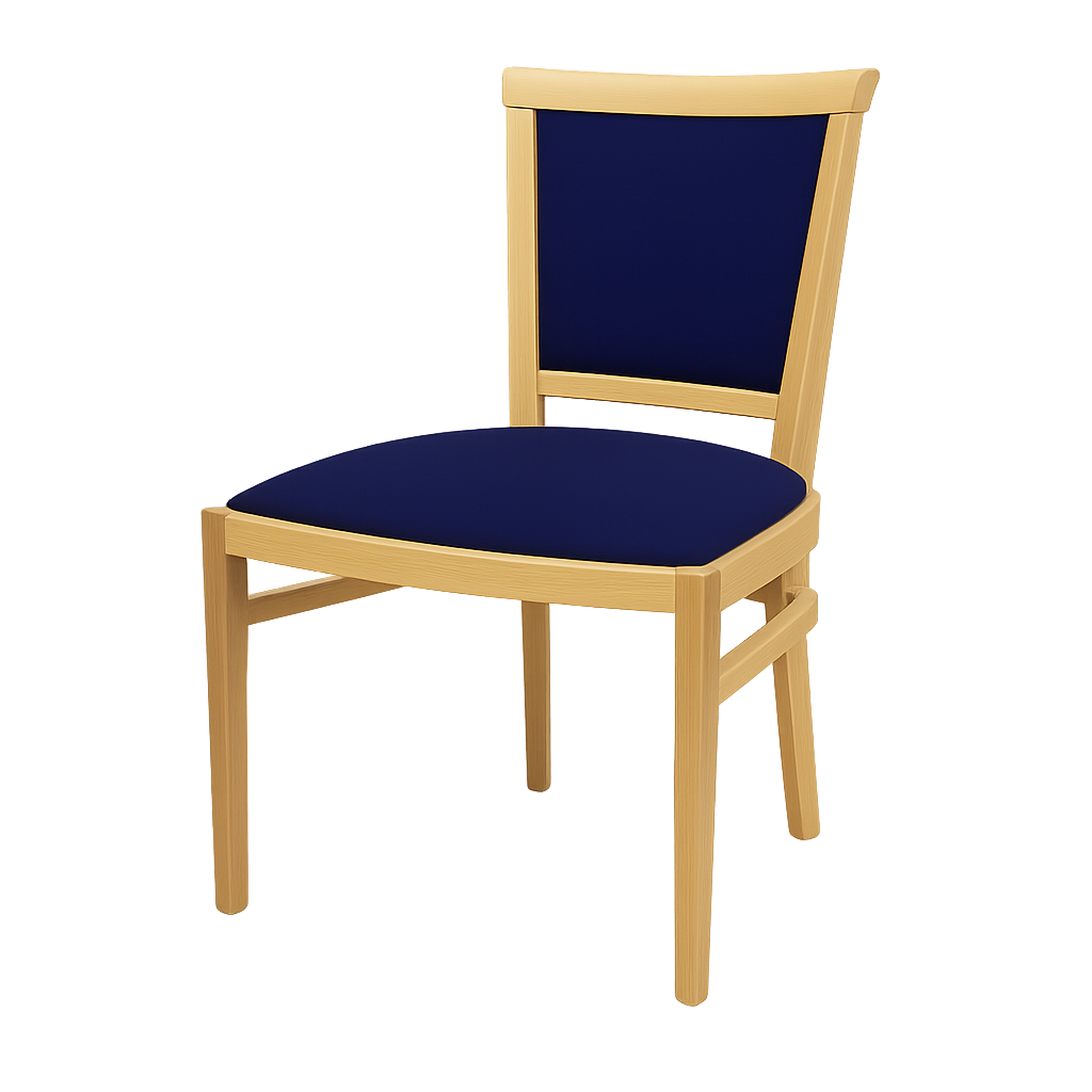 silla Bonn es un modelo elegante que combina una estructura clásica de madera con respaldo y asiento tapizados. Su forma sencilla y ligera, y el contraste entre la madera natural y la tela, le confieren un atractivo universal.