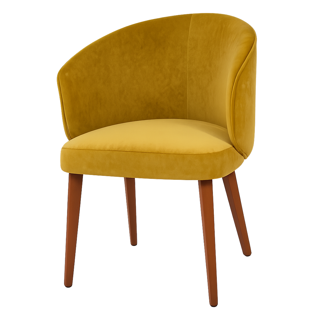 Bruno combina elegancia y simplicidad en un diseño moderno. Su respaldo redondeado envuelve al usuario, brindándole comodidad y calidez, mientras que sus esbeltas patas aportan ligereza al diseño general. Sus dimensiones compactas lo hacen ideal tanto para salas de estar, comedores como para espacios comerciales. Este mueble realza el carácter de cualquier interior, aportando estilo y funcionalidad.