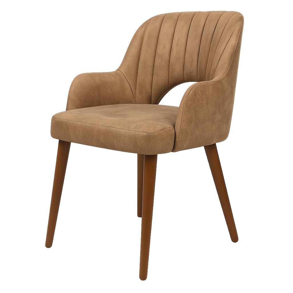 Bucco es un modelo elegante con una forma distintiva que combina comodidad y diseño moderno. Las costuras verticales del respaldo realzan su elegante apariencia, mientras que los reposabrazos integrados en el asiento brindan comodidad en el uso diario. Sus patas esbeltas y ligeramente acampanadas aportan ligereza y estabilidad a la estructura. Es ideal para comedores, salas de estar y espacios comerciales donde la estética y la funcionalidad son fundamentales.