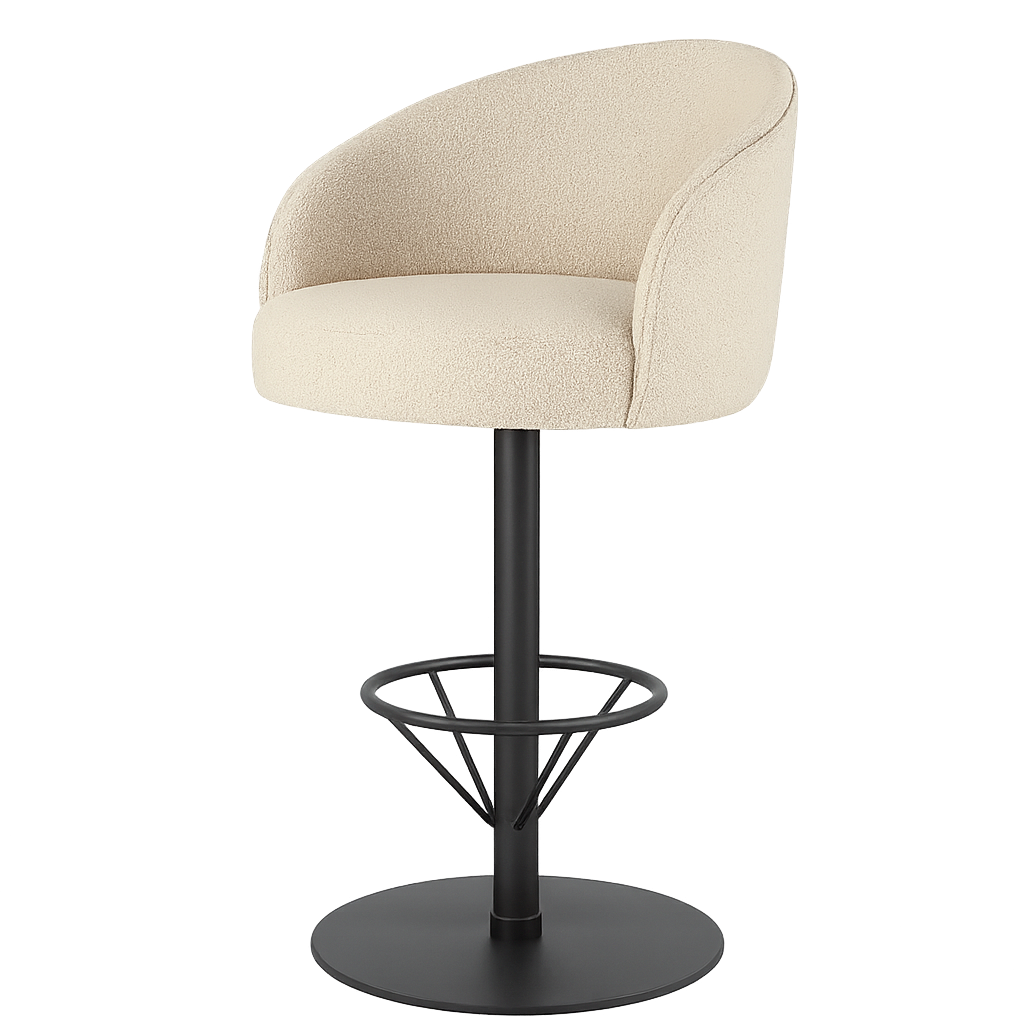 un taburete moderno y elegante, diseñado pensando en la comodidad y el estilo. Cuenta con un respaldo ergonómico con reposabrazos suaves para mayor comodidad incluso durante un uso prolongado. Su base metálica estable con un práctico reposapiés garantiza durabilidad y funcionalidad. Es perfecto para espacios HoReCa (bares, restaurantes, hoteles), así como para interiores privados modernos.