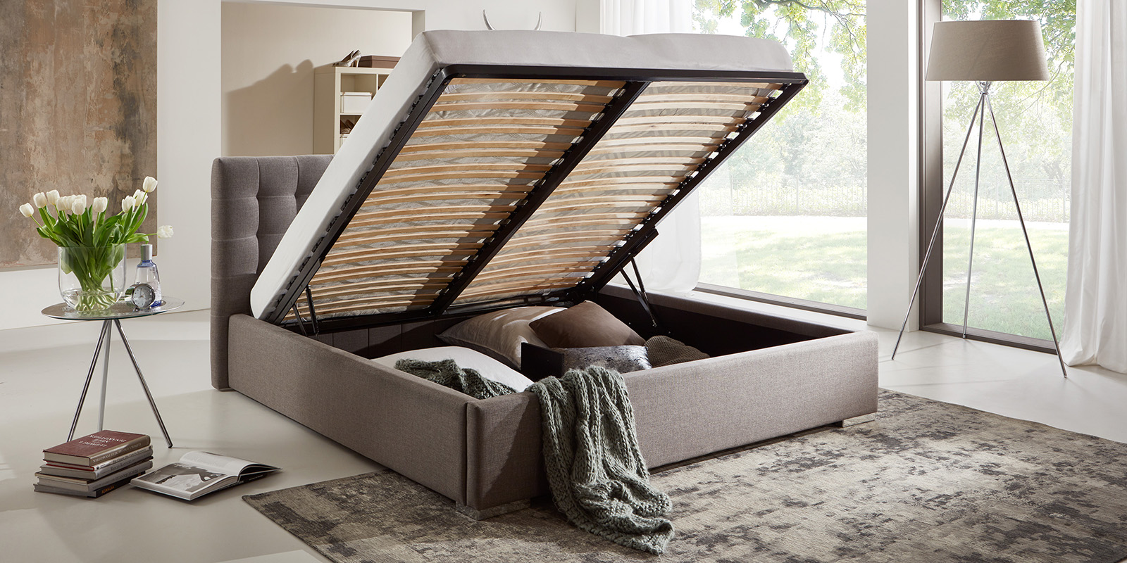 Cómoda elevación del marco: el mecanismo de resorte a gas facilita el uso diario y el acceso al compartimento de almacenamiento.