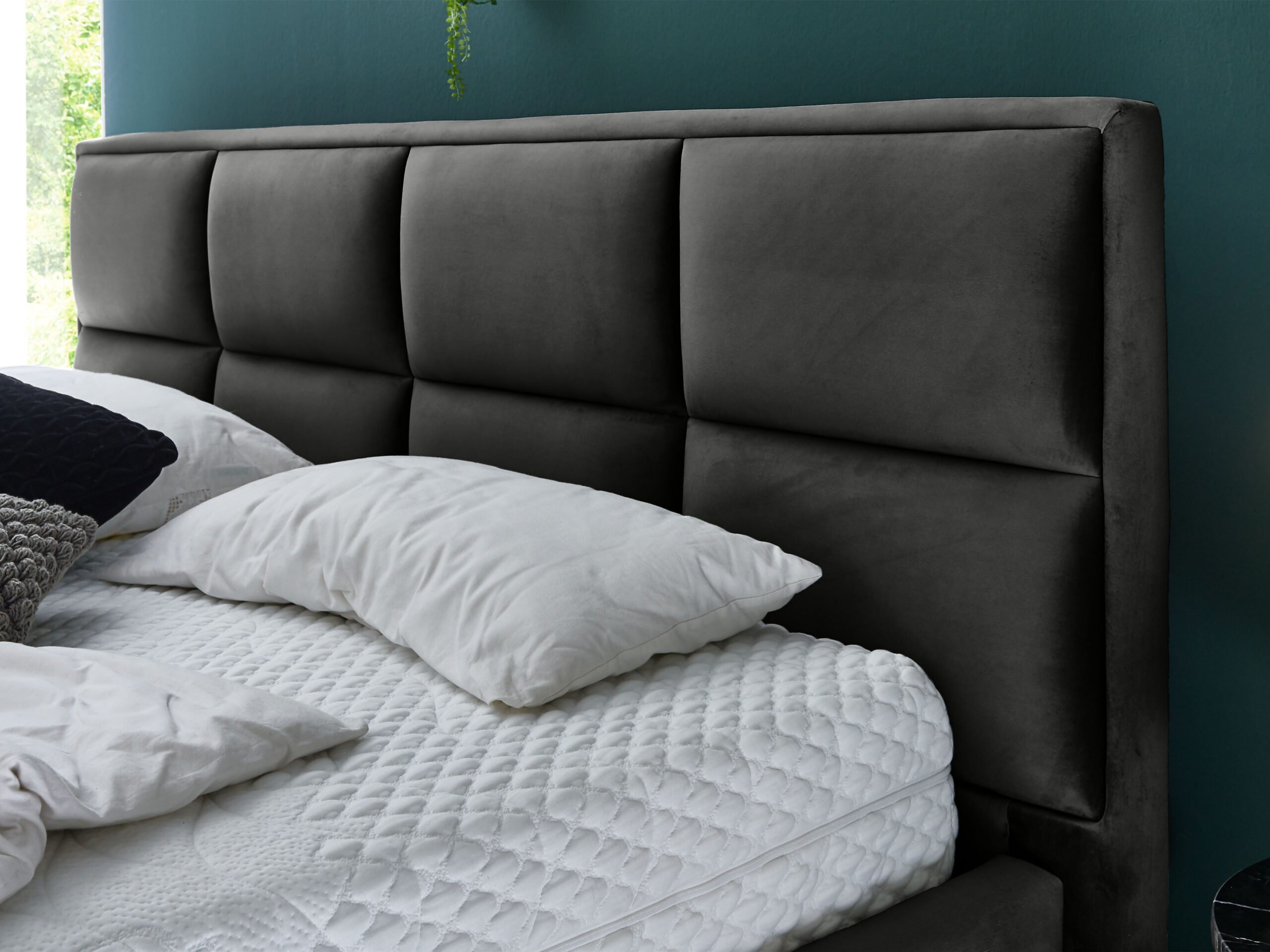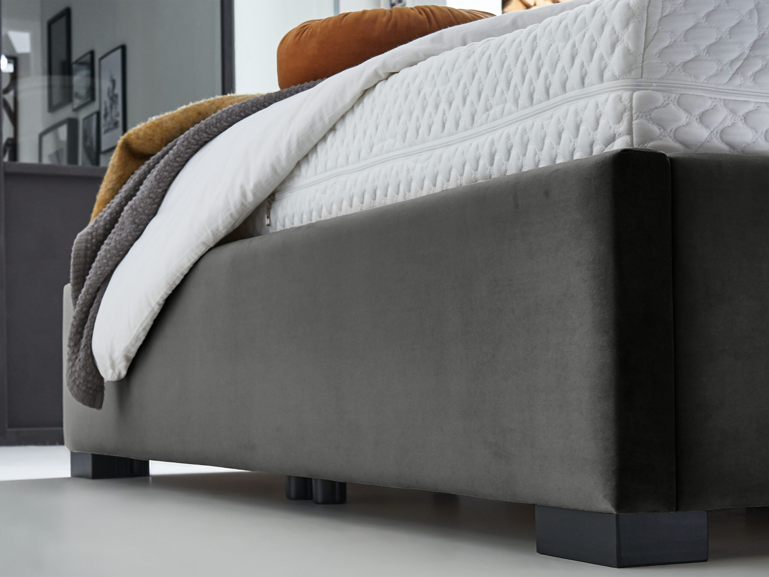 La tela VELLUTO es un terciopelo exclusivo con una textura agradable al tacto, resistente a la abrasión y fácil de limpiar. Su elegante brillo aporta un estilo único y un ambiente cálido a cualquier dormitorio.