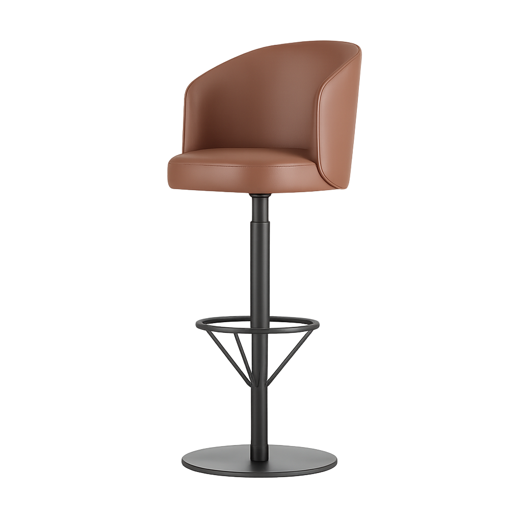 sgabello da bar Bruno HT è uno sgabello moderno ed elegante che unisce comfort e funzionalità. La stabile base in metallo con poggiapiedi garantisce facilità d'uso e resistenza. La seduta con schienale pieno e fianchi leggermente sagomati garantisce comfort anche per periodi di seduta prolungati. Il suo design versatile lo rende perfetto sia per spazi commerciali che per interni privati.