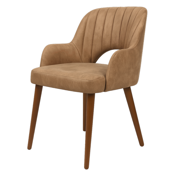 Bucco to stylowy model o charakterystycznej formie, który łączy wygodę z nowoczesnym designem. Pionowe przeszycia na oparciu podkreślają elegancki wygląd, a podłokietniki zintegrowane z siedziskiem zapewniają komfort w codziennym użytkowaniu. Smukłe, lekko rozchylone nogi nadają konstrukcji lekkości i stabilności jednocześnie. To idealny wybór do jadalni, salonu czy przestrzeni komercyjnych, w których liczy się zarówno estetyka, jak i funkcjonalność.