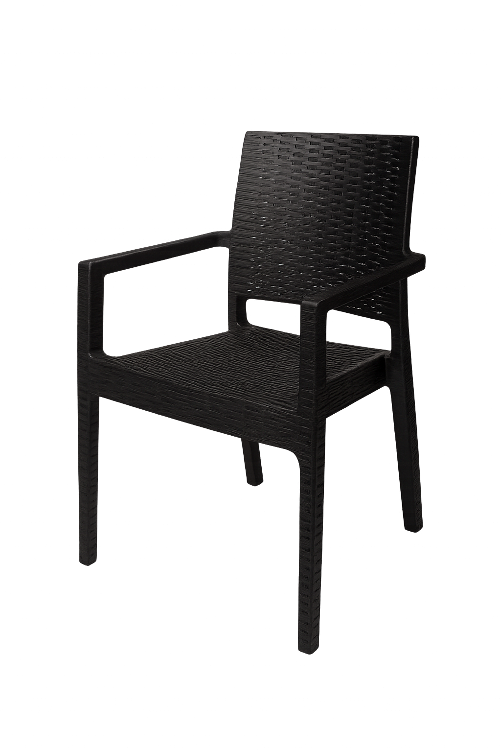 Design, Który Przyciąga Gości: Głęboka czerń i elegancka faktura inspirowana plecionką rattanową nadają krzesłu CAPRI BLACK wyrafinowany i nowoczesny wygląd. To uniwersalny design, który doskonale komponuje się z różnorodnymi wystrojami – od miejskich kawiarni po hotelowe patio, podnosząc estetykę Twojego lokalu.