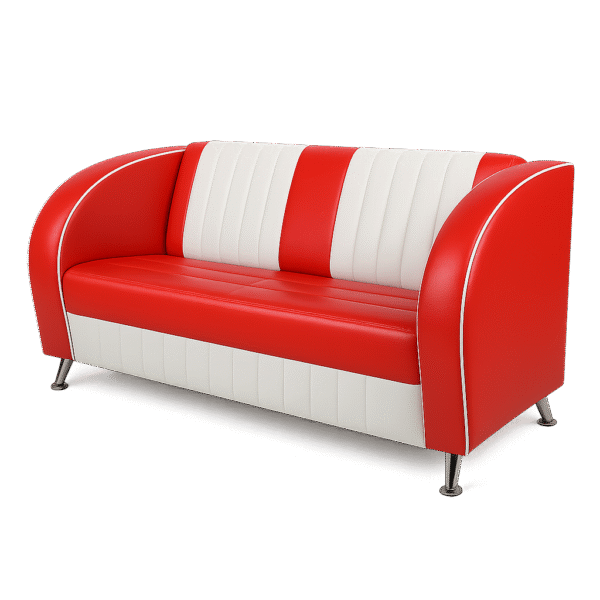 Loża Colorado to efektowne siedzisko w stylu retro, inspirowane amerykańskimi wnętrzami lat 60. Charakteryzuje się dynamicznym połączeniem dwóch kolorów z kontrastującymi przeszyciami oraz zaokrąglonymi bokami, które nadają jej niepowtarzalny charakter. Stabilne chromowane nóżki podkreślają lekkość konstrukcji i dodają elegancji.