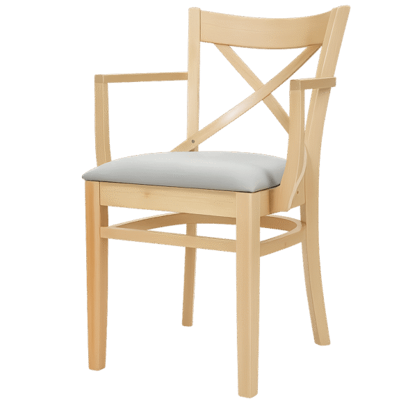 Krzesło Dortmund z podłokietnikami (Armlehne) to elegancka i solidna propozycja łącząca klasyczny styl z funkcjonalnością. Charakterystyczne oparcie w formie litery „X” nadaje mu ponadczasowego uroku, a drewniana konstrukcja zapewnia stabilność i trwałość. Dzięki wygodnym podłokietnikom oraz tapicerowanemu siedzisku model ten gwarantuje wyjątkowy komfort siedzenia.