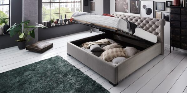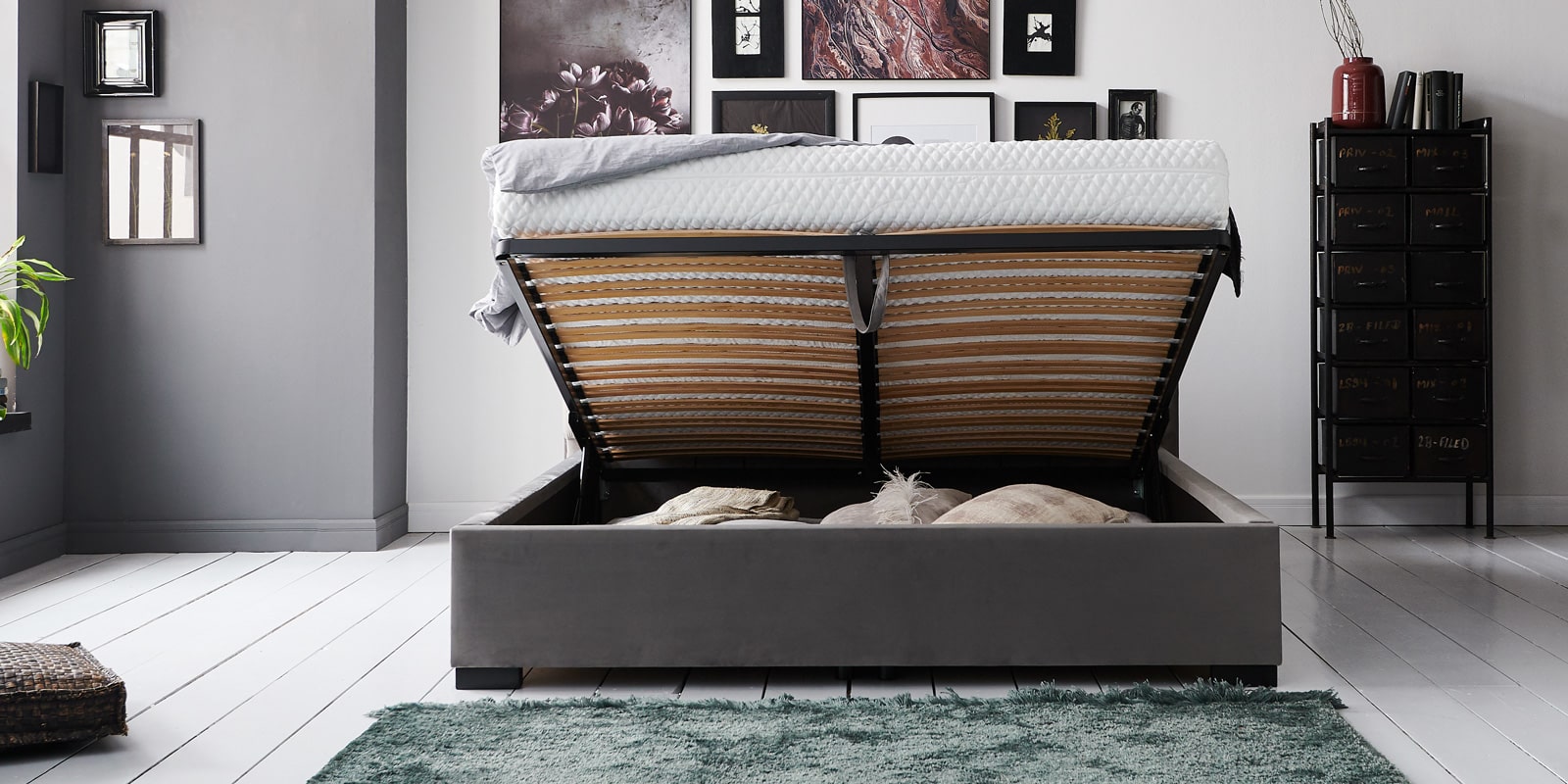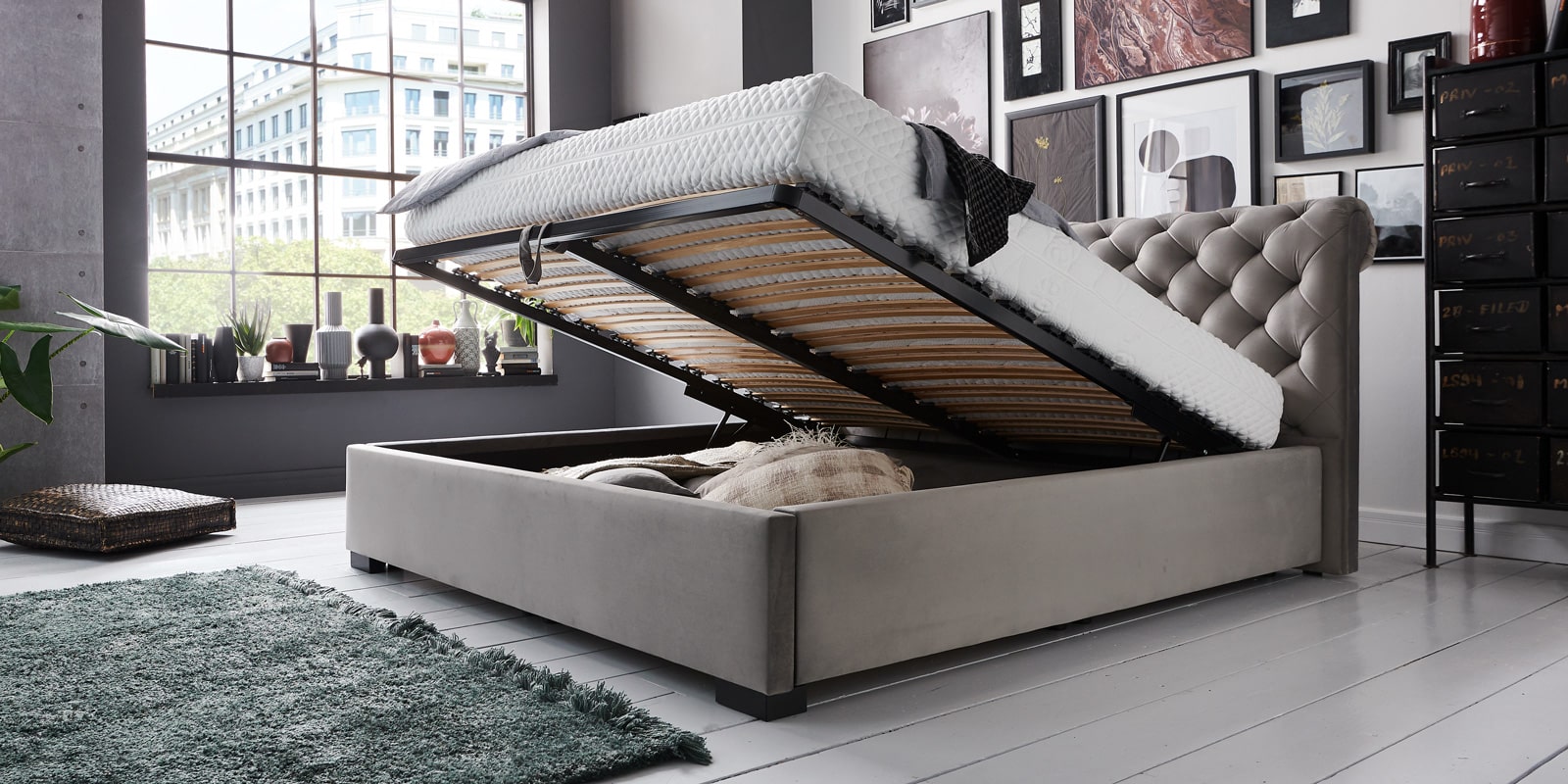 • Wygodne podnoszenie stelaża: Dzięki sprężynom gazowym stelaż unosi się lekko, umożliwiając łatwy dostęp do pojemnika na pościel.
